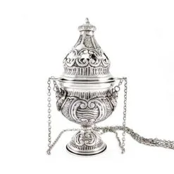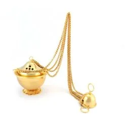 Turibolo Con Navetta Cosmos In Ottone Cesellato A Mano 21 Cm