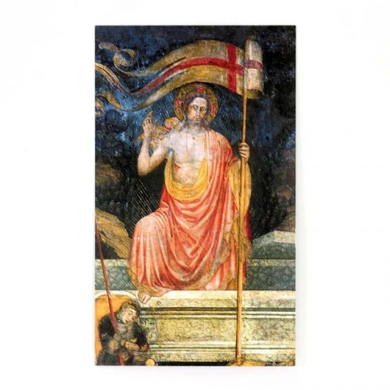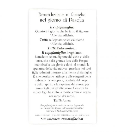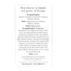 Benedizione in famiglia nel giorno di Pasqua. Sul frontale immagine che raffigura il Cristo risorto in carta semplice con stampa sul retro. Made in Italy