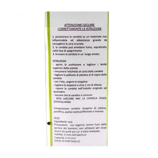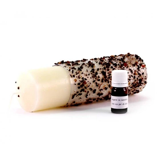 Candela con incenso alla mirra, fornita completa di olio per ungere lo stoppino e confezionata in scatola di plastica trasparente.