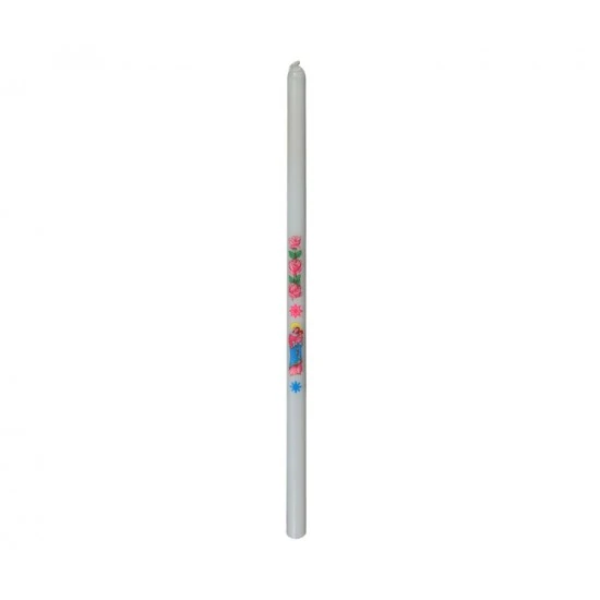 Candela in cera per candelora. Decalcomania della Madonna con il bimbo più tre rose. Made in Italy