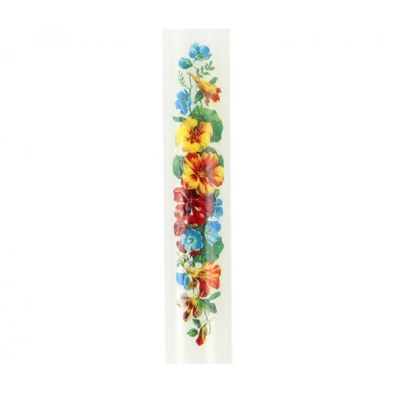 Candelina grande per Prima Comunione. Decalcomania che raffigura la simbologia liturgica del calice tra i fiori.