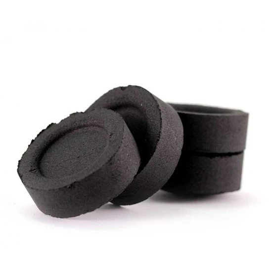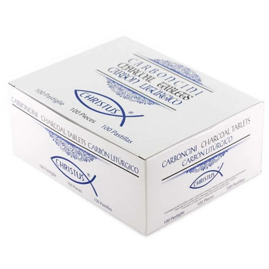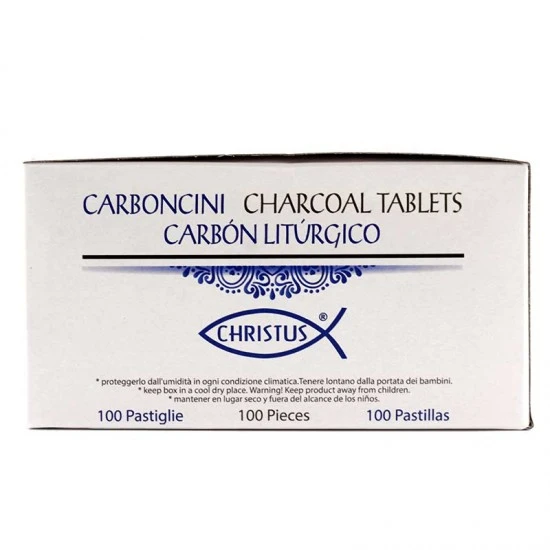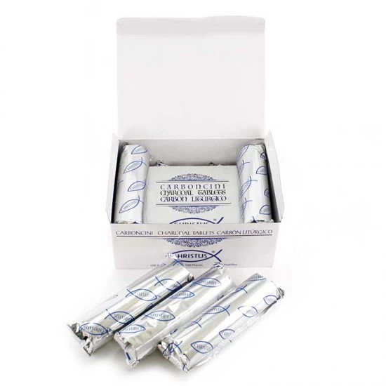 Carboncini per incensi grande durata, la scatola contiene 10 rotoli da 10 pellet di carbone (totale 100 compresse), confezionati ermeticamente in carta di alluminio per mantenerli isolati e intatti. La compressa di grandi dimensioni è di forma incava molto utile per accogliere l’incenso, le resine e legni.