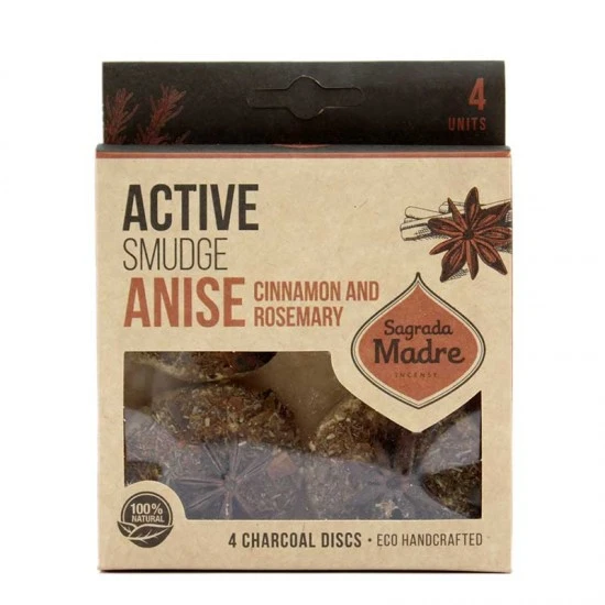 Carboncino Sagrada Madre – Pastiglia aromatica di erbe e resine completamente naturali ed ecologiche di ottima qualità e gradevole profumazione. Prodotto confezionato in scatola di cartone finestrato.