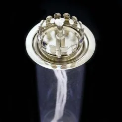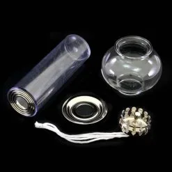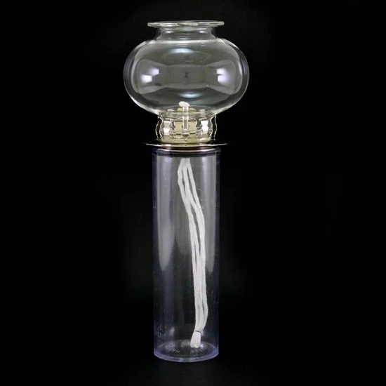 Cartuccia a cera liquida realizzata in plastica con antivento in vetro. La parte superiore della cartuccia è in ottone nichelato, munita di stoppino e gigler.