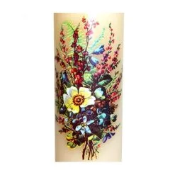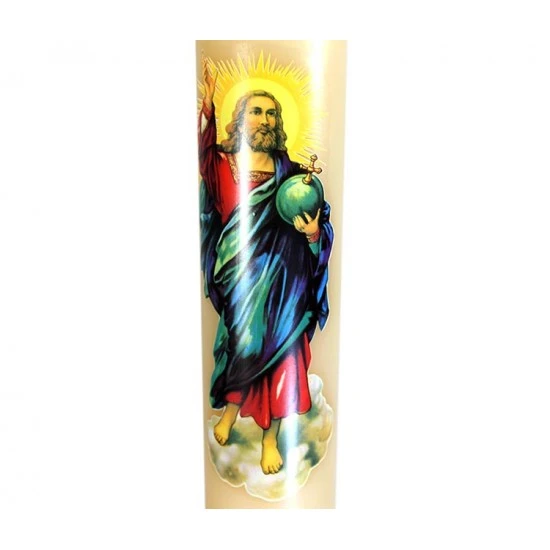 Cero Pasquale con decalcomanie raffiguranti Gesù Redentore, realizzato in cera d’api di primissima qualità. Diffonde un delicato e gradevole profumo di miele. Al suo interno abbiamo inserito un anima di ferro che parte dal basso per una lunghezza di 45 cm, utilissima per la stabilità del cero.