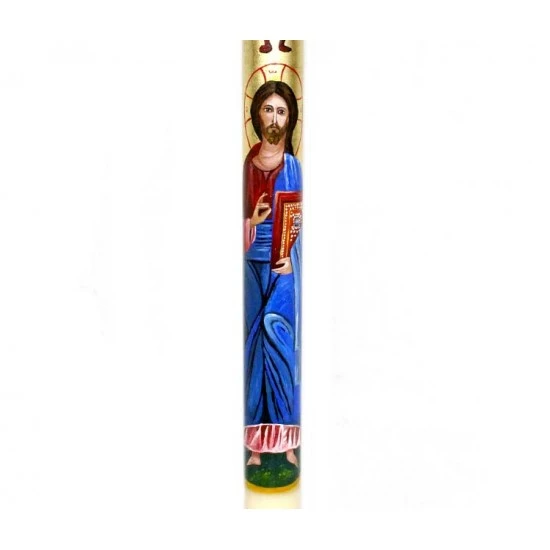 Cero Pasquale Gesù Maestro dipinto a mano, realizzato in cera d’api di primissima qualità che diffonde un delicato e gradevole profumo di miele. Le diverse raffigurazioni presenti sul cero vengono interamente dipinte a mano, splendido il Gesù Maestro eseguito da un artista napoletano che dipinge con molta dedizione ed amore ogni singolo pezzo. Made in Italy