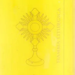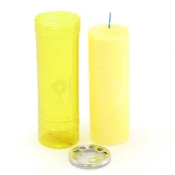Cerone Liturgico, in cera gialla con contenitore in plastica. La durata di 7 giorni (circa) è garantita dalla qualità della cera. Made in Italy