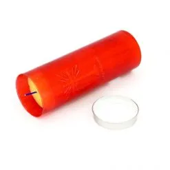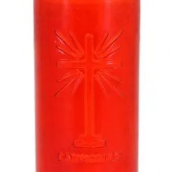 Cerone Liturgico in cera gialla con contenitore in sottile plastica rossa. La durata di 8 giorni (circa) è garantita dalla qualità della cera. Si raccomanda di non accendere il cero senza apporre il coperchio di metallo presente nella scatola. Made in Italy