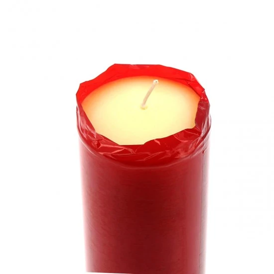 Cerone Liturgico in cera gialla con cellophan esterno di colore rosso. La durata di 8 giorni (circa) è garantita dalla qualità della cera. Made in Italy