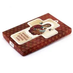Croce in legno con raffigurazione della Madonna del Perpetuo Soccorso fornita completa di scatola litografata contenente la preghiera per la Benedizione della casa. Made in Italy