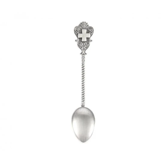 Cucchiaino per incenso realizzato in fusione di ottone con la simbologia della croce. Finitura argentata antica. Made in Italy