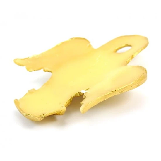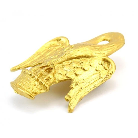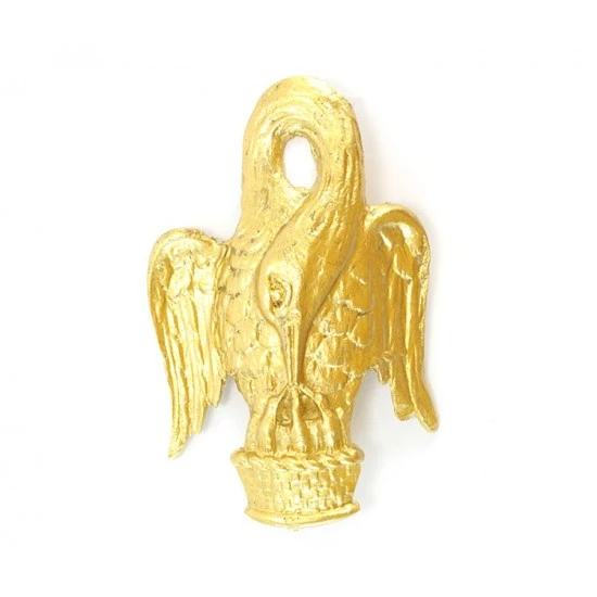 Decalcomania in cera dorata “Pellicano” per cero pasquale. Per essere applicata, questo tipo di decalcomania, va fissata direttamente sul cero con degli spilli riscaltati su fuoco. Made in Italy