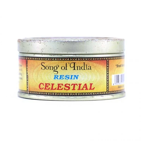Incenso Celestial. Incenso in resina con grani a pezzettoni di ottima qualità e gradevole profumazione, confezionato in barattolo di metallo molto utile per preservare il prodotto dall’umidità.
