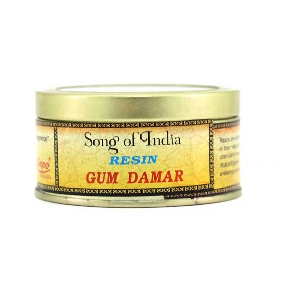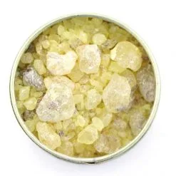 Incenso Gum Damar. Incenso in resina con grani a pezzettoni di ottima qualità e gradevole profumazione, confezionato in barattolo di metallo molto utile per preservare il prodotto dall’umidità.
