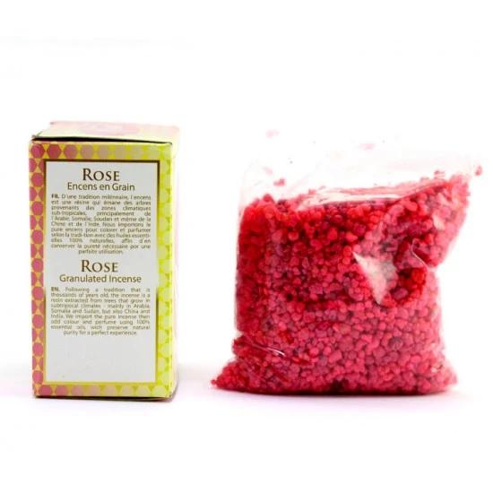 Incenso Rosa composto da una resina naturale e pura che non subisce trasformazioni con l’aggiunta di prodotti chimici ma viene lavorata esclusivamente con prodotti naturali che donano a questa essenza una gradevole profumazione che può essere inalata senza provocare allergie.