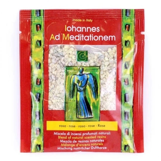 Incenso miscela Johannes di ottima qualità e gradevole profumazione alla rosa, confezionato in bustina litografata.