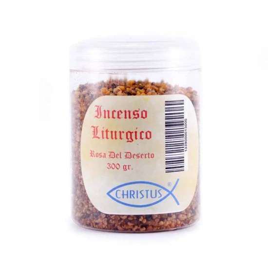 Incenso liturgico Rosa del deserto di ottima qualità e gradevole profumazione. Confezionato in barattolo di plastica trasparente molto utile per preservare il prodotto dall’umidità.