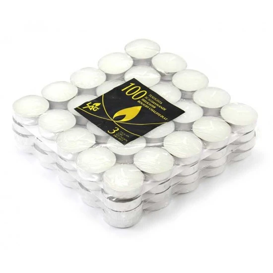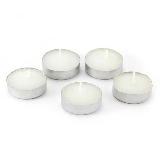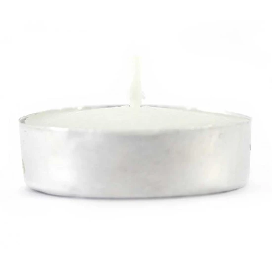 Lumino in cera bianca tondi, esterno in alluminio. Il prezzo è riferito alla confezione composta da 100 lumini