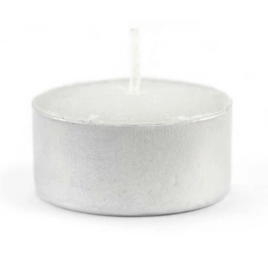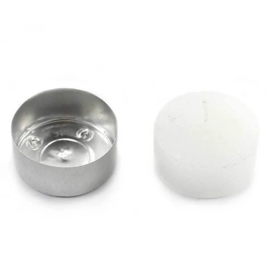 Lumino in cera bianca tondi, esterno in alluminio. Il prezzo è riferito alla confezione composta da 50 lumini