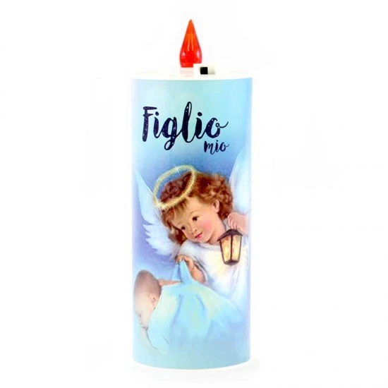 Lumino elettronico usa e getta, realizzato in cartoncino lucido litografato con frase dedicata Figlio mio. Funziona a pile non sostituibili ed è munito di interruttore di spegnimento. Durata 90 giorni circa. Made in Italy