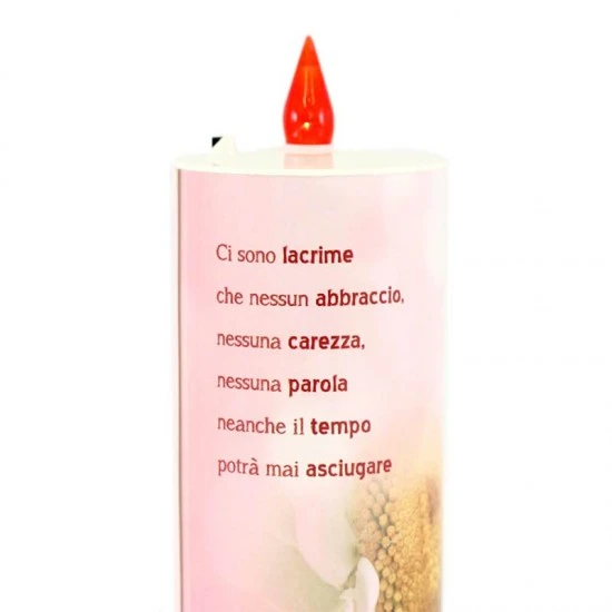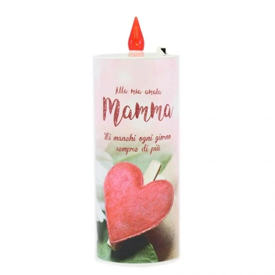 Lumino elettronico usa e getta, realizzato in cartoncino lucido litografato con frase dedicata alla Mamma. Funziona a pile non sostituibili ed è munito di interruttore di spegnimento. Durata 90 giorni circa. Made in Italy