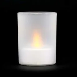 Lumino led a batterie corredato di contenitore in plastica. Emette una luce fioca e tremolante simile alla fiamma della candela, si accende e si spegne semplicemente soffiandoci sopra proprio come una candela, in alternativa si può battere leggermente il lumino. Funziona con 3 batterie a bottone AG13 (non incluse)