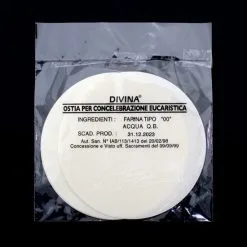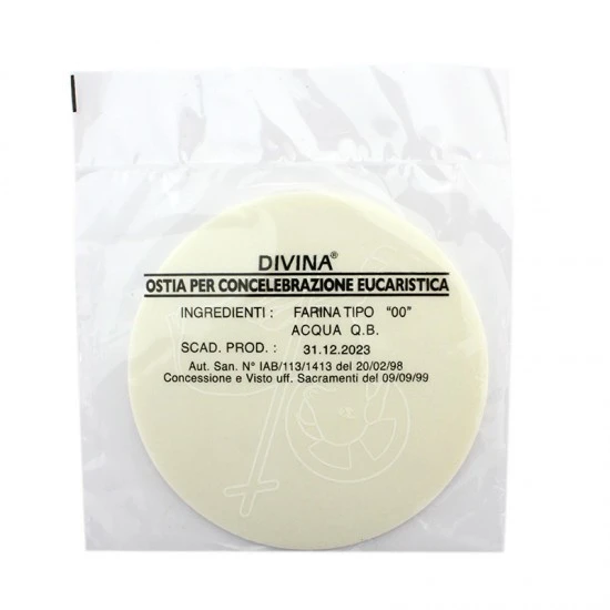 Ostia Magna di grandi dimensioni particolarmente adatta ad essere esposta all’interno della teca ostensorio. Prodotto linea Divina realizzato secondo il rispetto delle normative vigenti in materia di lavorazione dei prodotti alimentari che sono alla base per ottenere qualità e dare sicurezza ai consumatori. Made in Italy