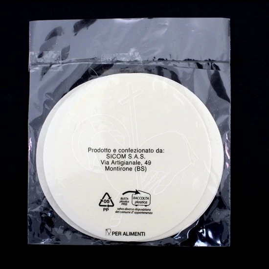 Ostia Magna di grandi dimensioni particolarmente adatta ad essere esposta all’interno della teca ostensorio. Prodotto linea Divina realizzato secondo il rispetto delle normative vigenti in materia di lavorazione dei prodotti alimentari che sono alla base per ottenere qualità e dare sicurezza ai consumatori. Made in Italy