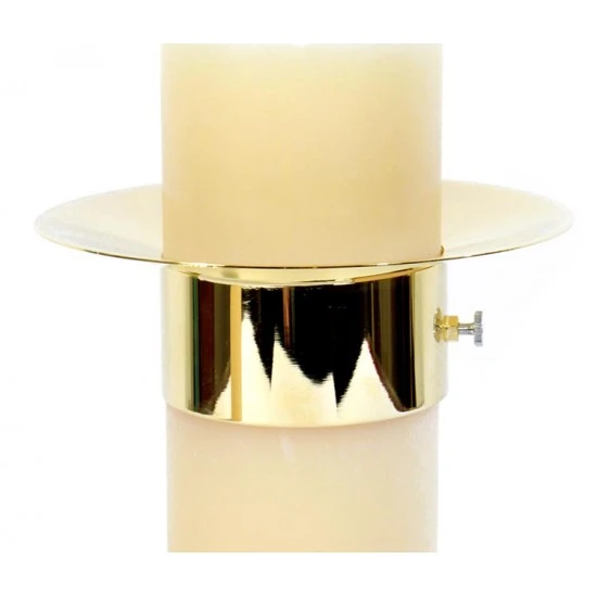 Paracera scorrevole realizzato in metallo, finitura dorata adatto per il cero Pasquale. Il perno argentato laterale consente con estrema facilità lo scorrimento, cosi da posizionarlo all’altezza desiderata.