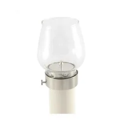 Parafiamma in vetro con ghiera di metallo argentato, protegge la fiamma dal vento. Questo accessorio liturgico si fissa alla candela in plastica grazie ad un perno filettato di metallo posizionato lateralmente che si avvita facilmente. Il parafiamma è indicato per una candela dal diametro di 5 cm.