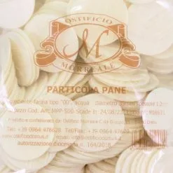 Particola Pane per la comunione dei fedeli. Prodotto della linea Morreale realizzato secondo il rispetto delle normative vigenti in materia di lavorazione dei prodotti alimentari che sono alla base per ottenere qualità e dare sicurezza ai consumatori. Made in Italy