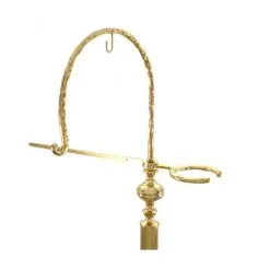 Porta turibolo dorato realizzato in ottone dorato lucido con base in fusione. Munito di gancio nel quale viene appeso il Turibolo, supporto ad anello nel quale si inserisce la navicella e asta laterale pieghevole per riporre il Velo Omerale. Produzione eseguita in un piccolo laboratorio artigianale di Arredi Sacri con grande esperienza che utlizza tutti materiali di prima scelta. Made in Italy