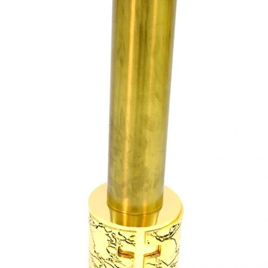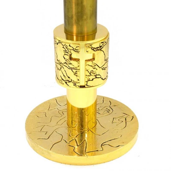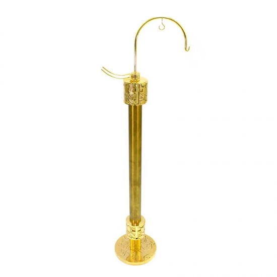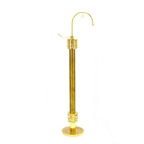 Portaturibolo decorato con Croci traforate realizzato in ottone dorato con base circolare, munito di doppio gancio nel quale si appende il turibolo e supporto nel quale si inserisce la navicella. Made in Italy
