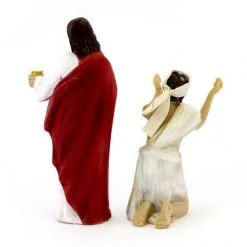 Scena raffigurante la guarigione del cieco, realizzata interamente in resina colorata effetto legno. Prodotto di ottima fattura e ben rifinito, fornito confezionato in scatola di cartone.