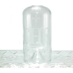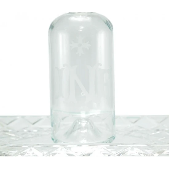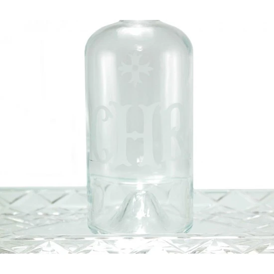 Servizio di olii santi di forma cilindrica (Infermi, Chrisma e Catecumeni) realizzato in cristallo di bohemia molato. I tappi delle ampolle sono ad incastro sicuro. Piattino rettangolare con lavorazione analoga. Viene spedite in una scatola molto elegante di colore rosso rubino. Ideali per un regalo.