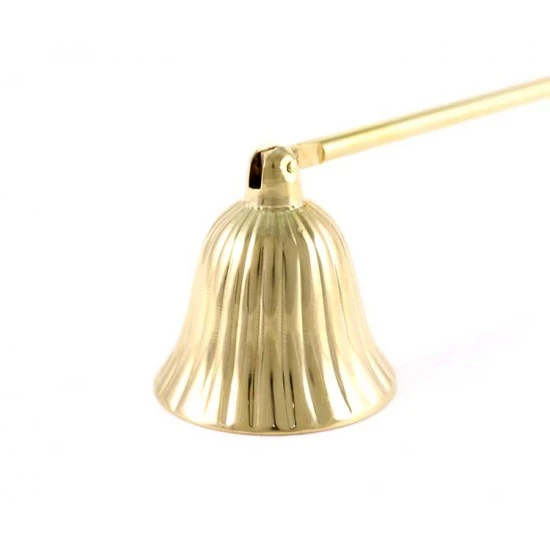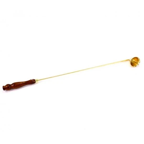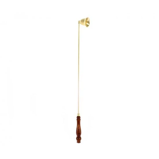 Spegni candele accessorio di grande comodità utilizzato per spegnere le candele poste in alto. Realizzato in ottone dorato con manico in legno.
