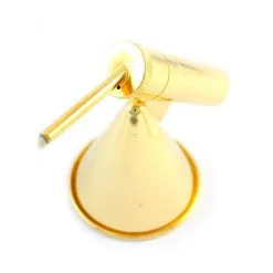 Accendi e spegni candela, accessorio di grande comodità utilizzato per accendere e spegnere le candele poste molto in alto. Realizzato in ottone dorato e dotato di un serbatoio funzionante a cera liquida completo di stoppino. Nel tubo si consiglia di inserire un’asta in legno (tipo manico di scopa).