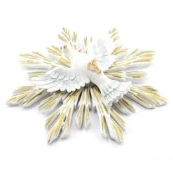 Spirito Santo realizzato interamente in resina colorata, impreziosito da una splendida raggiera ben rifinita. Quest’opera di pregevole fattura artigianale viene lavorata in un piccolo laboratorio dalla grande esperienza per le sculture sacre. Made in Italy