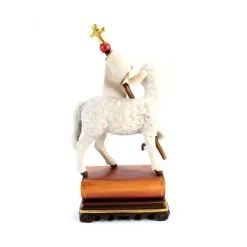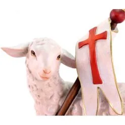 Statua Agnello Pasquale realizzata interamente in legno di acero naturale che successivamente viene dipinto a mano con colori ad olio. Opera artigianale di pregevole fattura eseguita con grande cura per i particolari. Made in Italy