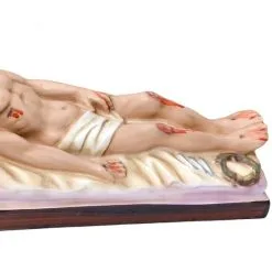 Statua Gesù morto steso su letto, realizzata interamente in resina dipinta a mano con colori indelebili. Produzione artigianale eseguita in un piccolo laboratorio dalla grande esperienza nella lavorazione di tutte le sculture sacre, questi artigiani curano ogni pezzo con la massima attenzione cura per i particolari al fine di rendere ogni opera unica ed originale. Made in Italy