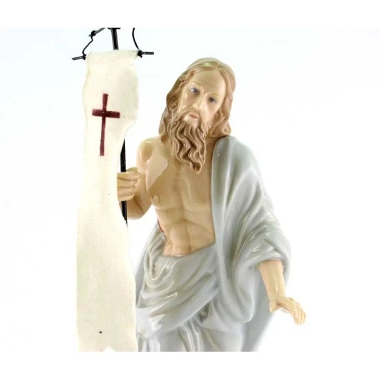 Statua di Gesù Risorto realizzata interamente in porcellana Collezione Navel, dipinta a mano con colori pastello. Confezionata in scatola da regalo in cartone.