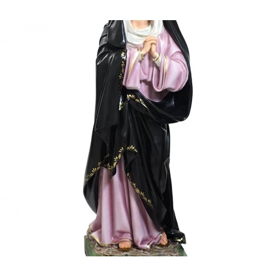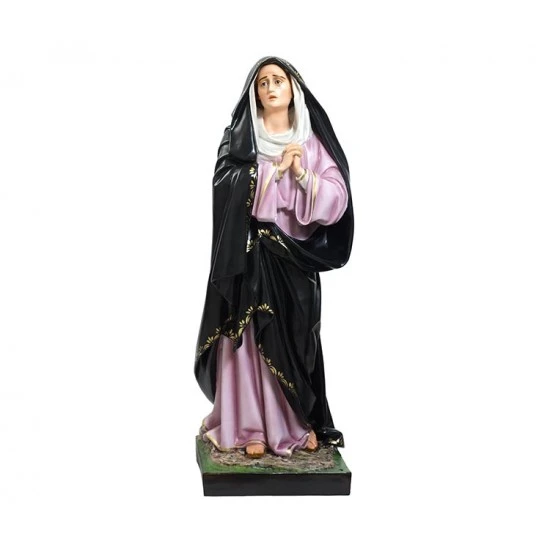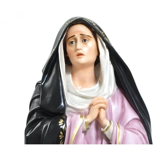 Statua Madonna Addolorata, realizzata interamente in resina vuota e dipinta a mano con colori indelebili e resistenti alle intemperie. Produzione artigianale eseguita in un piccolo laboratorio dalla grande esperienza nella lavorazione di tutte le sculture sacre, questi artigiani curano ogni pezzo con la massima attenzione e cura per i particolari al fine di rendere ogni opera unica ed originale. Made in Italy