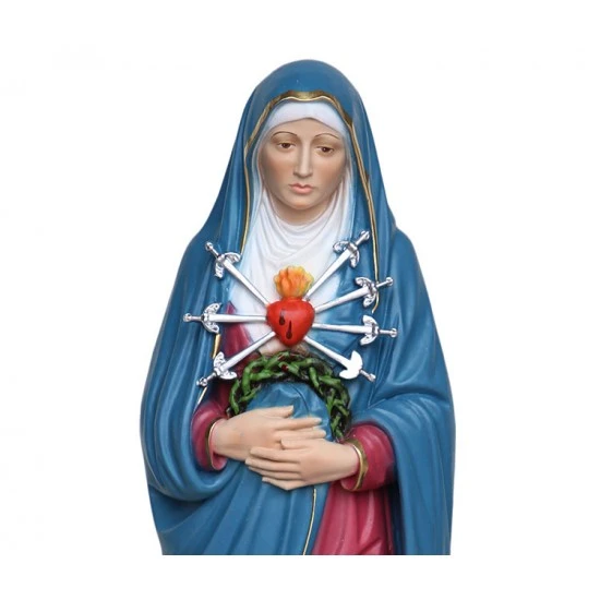 Statua Madonna Addolorata realizzata interamente in resina colorata. Produzione artigianale eseguita in un piccolo laboratorio dalla grande esperienza nella lavorazione di tutte le sculture sacre, questi artigiani curano ogni pezzo con la massima attenzione per tutti i particolari al fine di rendere ogni opera unica ed originale. Made in Italy