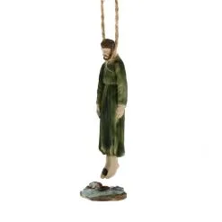 Scena raffigurante la morte di Giuda, statuina adatta per presepe pasquale realizzata interamente in resina colorata. Prodotto di ottima fattura e ben rifinito nei particolari, fornito confezionato in bustina di plastica.