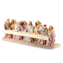 Statua Ultima Cena realizzata interamente in resina piena colorata con colori molto tenui. Prodotto importato di ottima fattura e ben rifinito nei particolari. La statua è ben confezionata e corredata di elegante scatola.