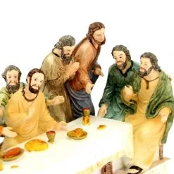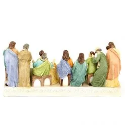 Statua Ultima Cena da poggiare realizzata interamente in resina colorata. Prodotto di ottima fattura e ben rifinito nei particolari, confezionato in elegante scatola di cartone litografato con imballaggio sicuro per il trasporto.