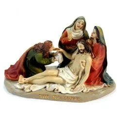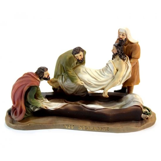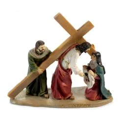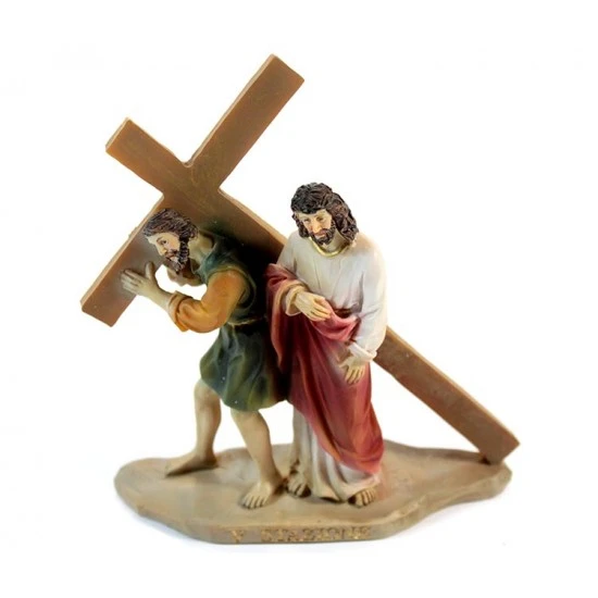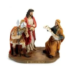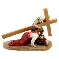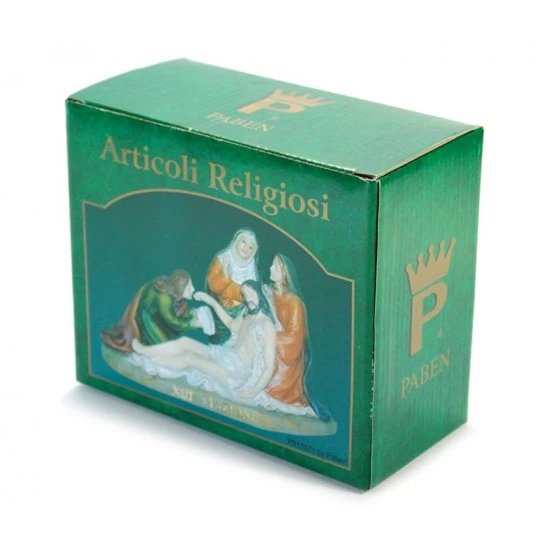 Via Crucis realizzata in singole stazioni. Particolare rappresentazione delle 14 stazioni della Via Crucis in resina colorata tipo legno. Ogni scena è fornita di scatolo singolo di cartone litografato.