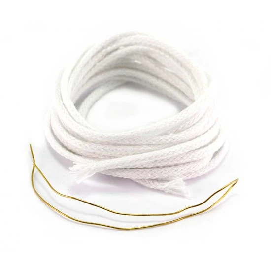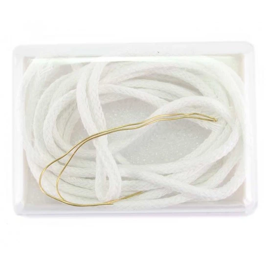 Stoppino per Cera Liquida, confezione che contiene un pratico filo di metallo utile per infilare più facilmente lo stoppino.