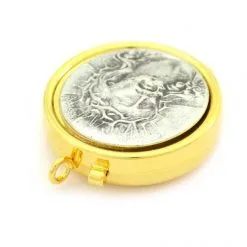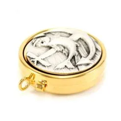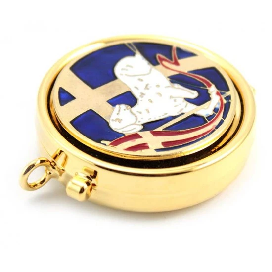 Teca eucaristica in metallo dorato con placca smaltata raffigurante agnello pasquale. Made in Italy