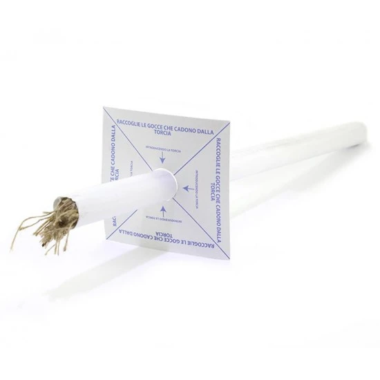 Torcia a vento in cera, completa di cartoncino salvagoccia, adatta per processioni esterne. Made in Italy